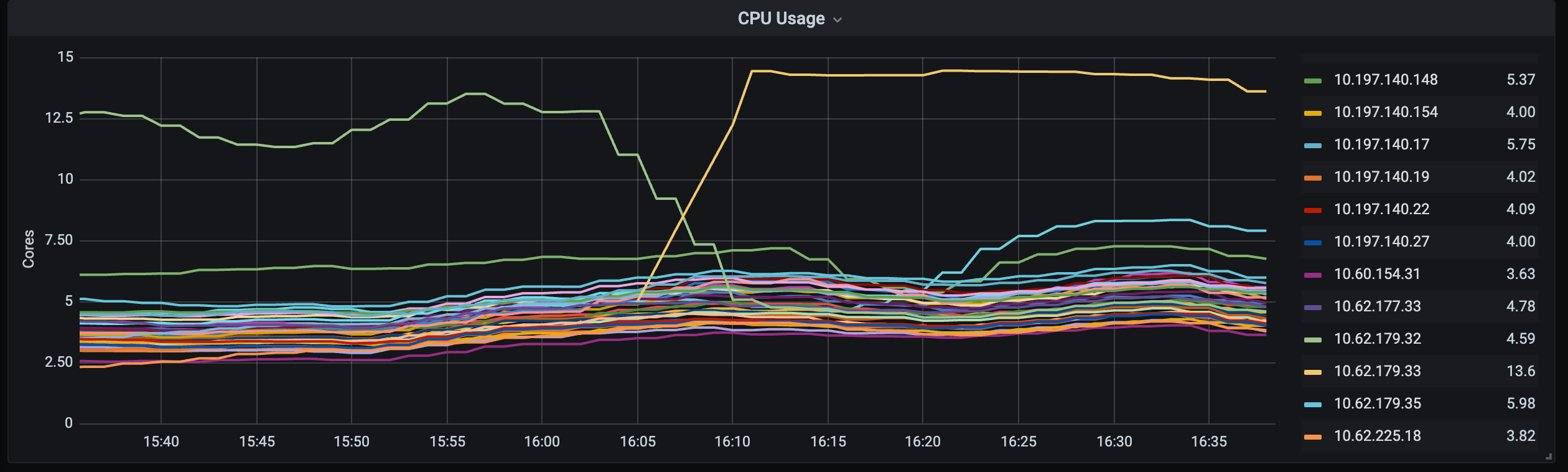 如果客户端和 kafka 建立的是稳定的长连接的话,不应该有很多的 ip 输出,在正常的 kafka 实例所在的机器上执行确实如此,但是在异常的 kafka 实例所在的机器上执行有如下输出。