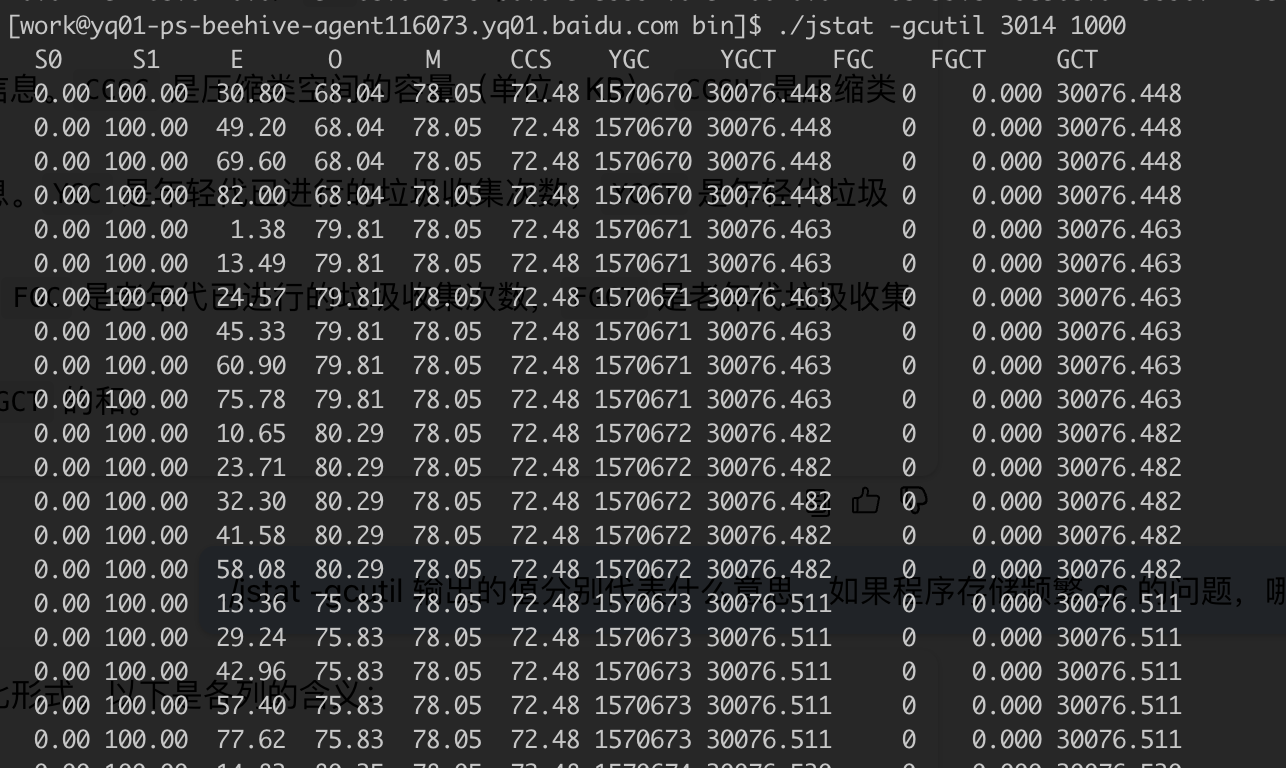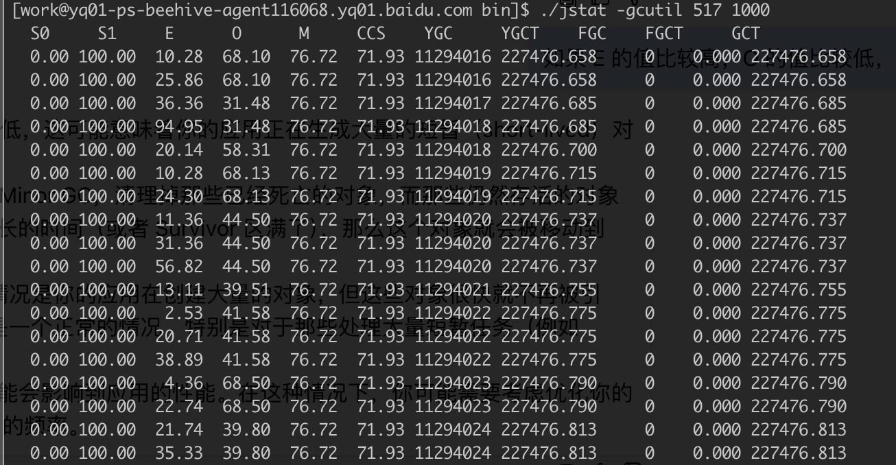 1 | ./jstat -gcutil <pid> 1000 # 1s 刷一次 |
