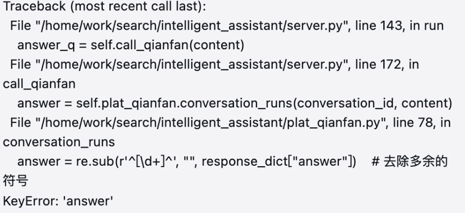 服务号「 搜索离线建库help」 对于问答问答的场景,原服务直接调用了千帆的接口,且这个接口目前调用出错。实际上原先这个接口返回的结果也不是特别好,于是决定重新搞一个可控的问答模块。