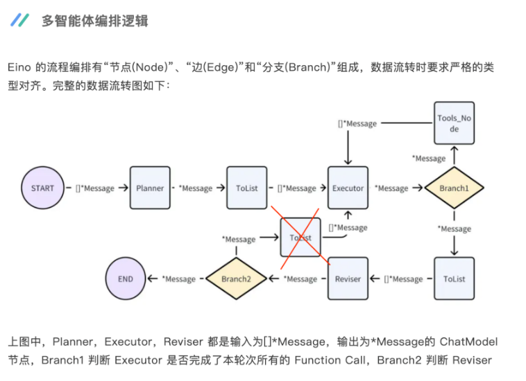 使用 eino 框架和 golang 代码进行开发很大程度上减少了心智负担,可以专注于业务逻辑和切面逻辑的开发,而不用关心执行拓扑之间联动的细节以及各个节点输入输出的类型。虽然在进行代码编写时,相较于 python,会多出来不少内容,因为需要显示定义各个接口的类型,但是在完成编码时,心里是非常踏实的。另外,好几年没关注 golang 了,没想到现在居然已经支持泛型了,终于不用将框架抽象接口的类型定义为 interface{} 了。