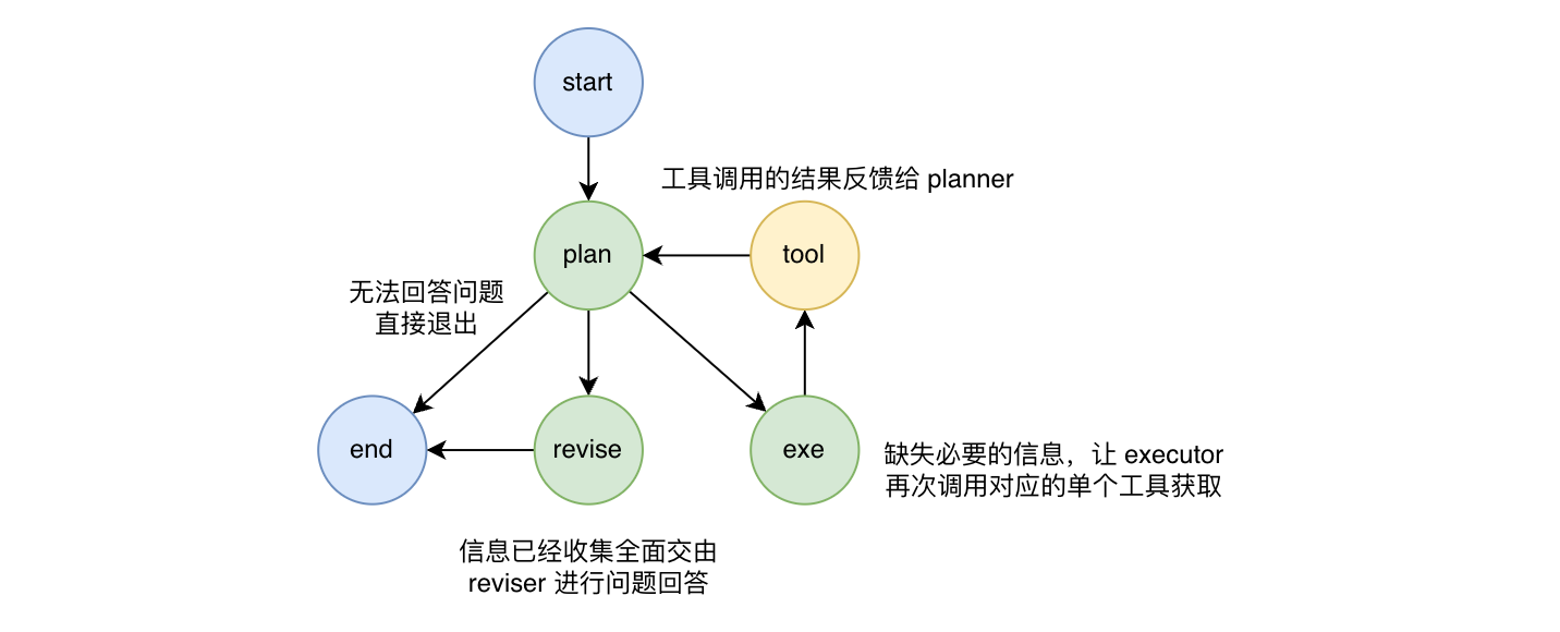 为了获取需要的数据,planner 一次生成一个工具调用的指令,这个指令交给 tool_executor 执行