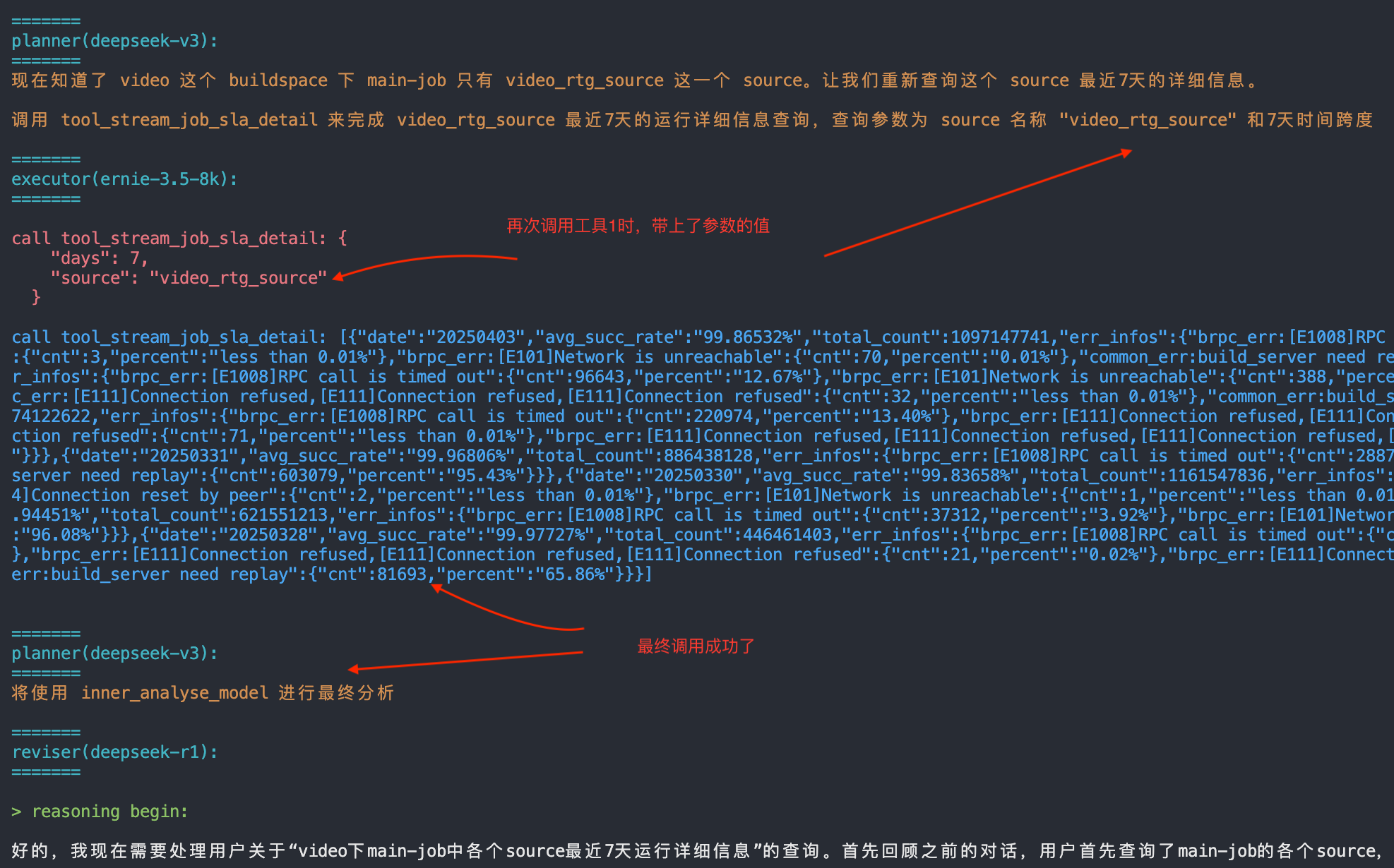 如果执行成功,返回给 planner 的只有工具的入参和出参