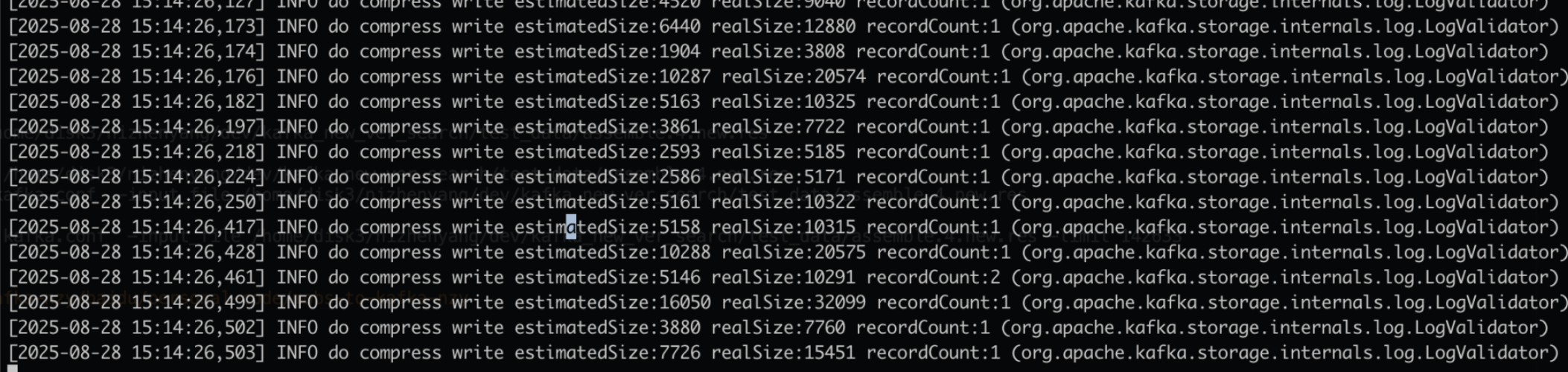 privatedefappend(records: MemoryRecords, // ..... ignoreRecordSize: Boolean): LogAppendInfo = { // .... // they are valid, insert them in the log lock synchronized { maybeHandleIOException(s"Error while appending records to $topicPartition in dir ${dir.getParent}") { localLog.checkIfMemoryMappedBufferClosed() if (validateAndAssignOffsets) { // assign offsets to the message set val offset = PrimitiveRef.ofLong(localLog.logEndOffset) appendInfo.setFirstOffset(offset.value) val validateAndOffsetAssignResult = try { val targetCompression = BrokerCompressionType.targetCompression(config.compression, appendInfo.sourceCompression()) val validator = newLogValidator(validRecords, // .... appendInfo.sourceCompression, targetCompression, // ..... ) validator.validateMessagesAndAssignOffsets(offset, validatorMetricsRecorder, requestLocal.getOrElse(thrownewIllegalArgumentException( "requestLocal should be defined if assignOffsets is true") ).bufferSupplier ) } catch { case e: IOException => thrownewKafkaException(s"Error validating messages while appending to log $name", e) } // .... } } }